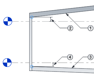 • 对于建筑地坪、楼板和结构楼板,与坡度相关的属性相对于顶面进行测量。例如,“相对标高”是指标高与楼板顶面之间的距离。