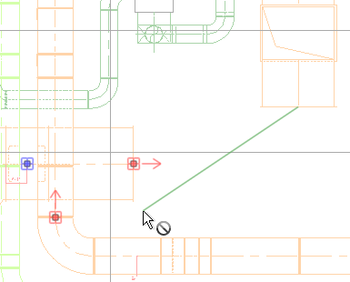 移动鼠标时,Revit 会测量视图中位于同一平面上的打开的连接件,以确定是否可以建立连接。 每个可用连接件上都会显示一个箭头。
