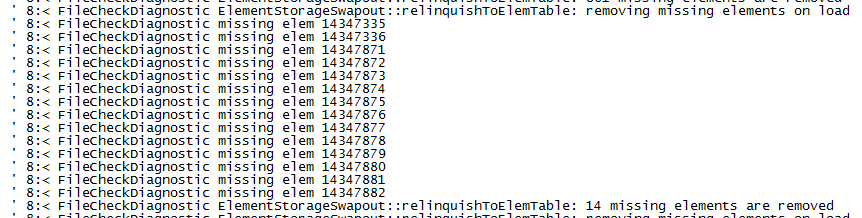 使用文本编辑器中的搜索工具,在文件中搜索“missing elem”,以查找有关缺失图元的信息。 查找所列 8 位图元 ID,并将其复制到空白文本文件中以供参考。