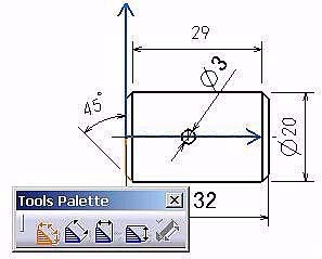 单击工具栏中【Dimensions】(智能标注)图标 ,然后单击图上的直线,自动标注出直线的长度,鼠标再单击窗口中任意位置,尺寸标注完成。也可以在【Tools Palette】工具栏中选择标注的尺寸样式。