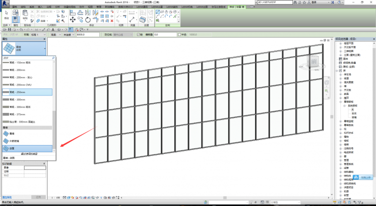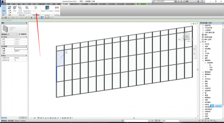 2、在这里我们已幕墙作为例子。使用幕墙命令随意拉一块幕墙