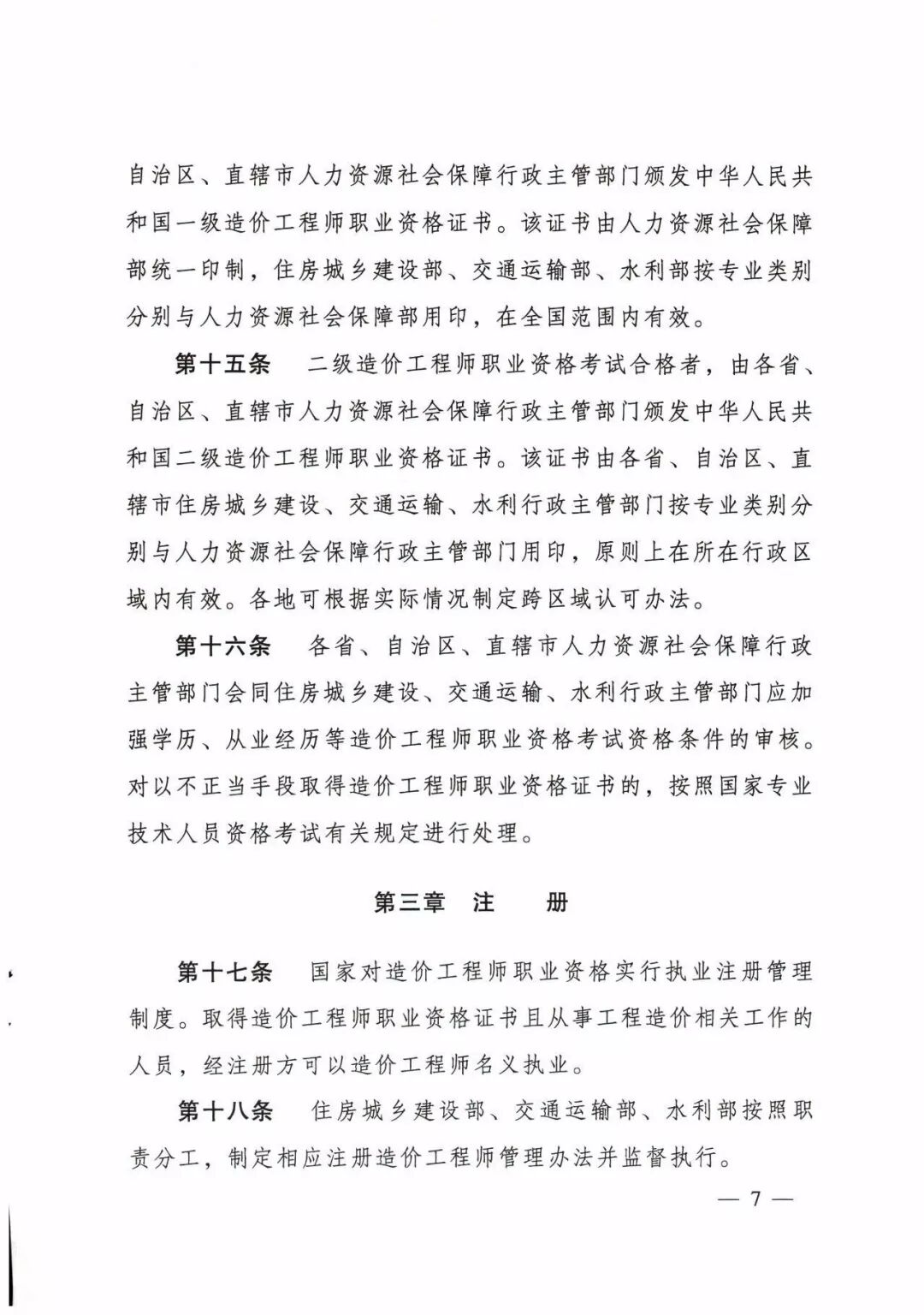 近日四部委联合印发〈造价工程师职业资格制度规定〉〈造价工程师职业资格