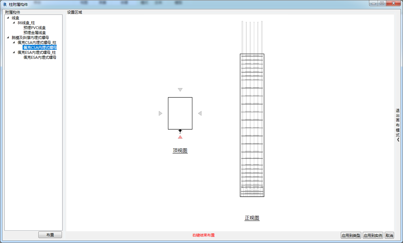 支持“线盒”、“脱模及斜撑内预埋螺母”两种类型的附属构件布置,支持柱子的4个侧面布置