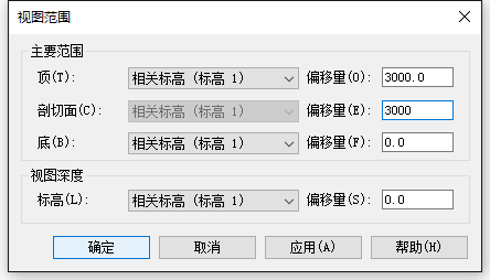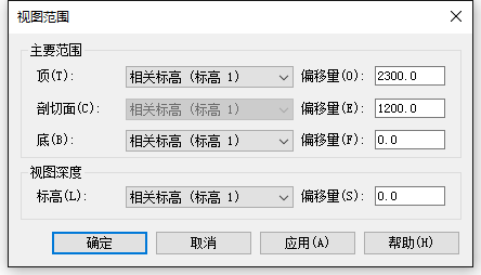 1.在“属性”面板中修改“视图范围”,显示最高的窗,如图所示。