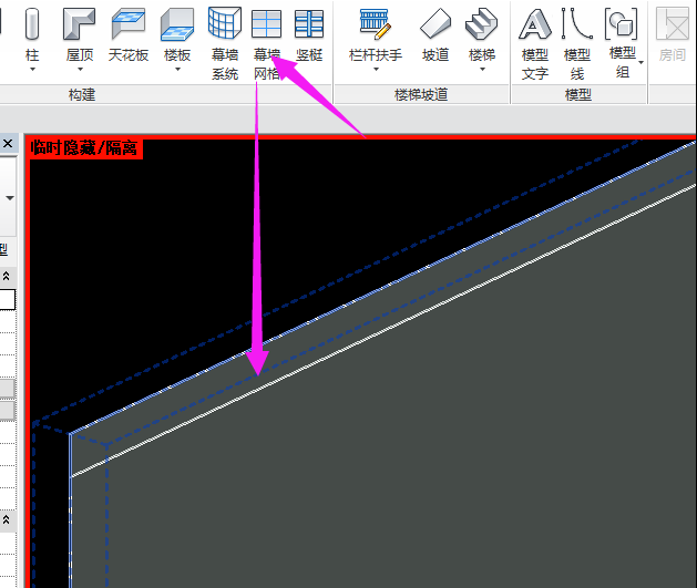 在Revit 用幕墙建模时,常常要在幕墙顶部做边缘散水。而墙饰条只能放置在墙表面却不能放置在幕墙表面。那么如何让墙饰条也能放置幕墙上呢?