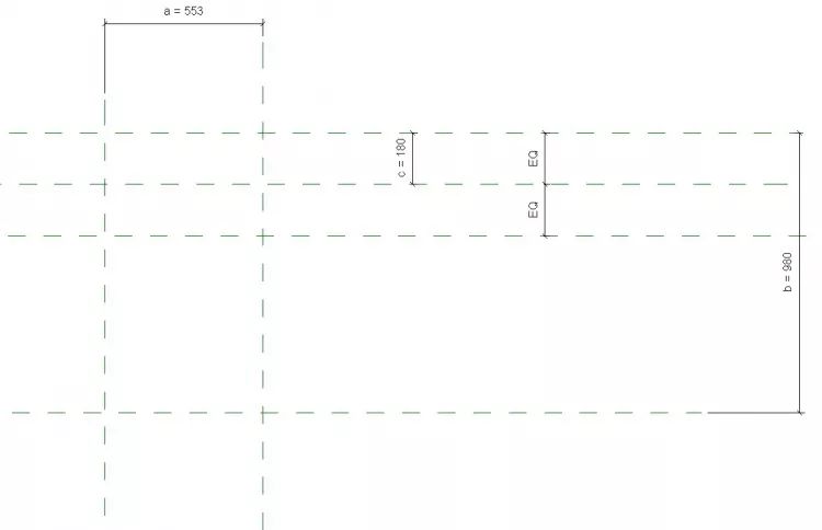 2、绘制参照平面并添加实例参数a、b、c,如图所示。