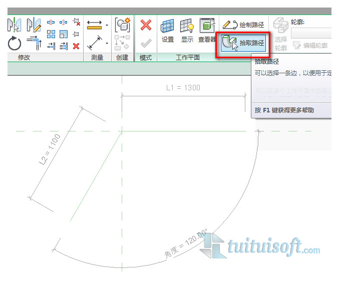 产生以上,问题的原因在于,我们在拾取路径的时候没有去设置当前的工作平面为,其中一条的参照线的工作平面。但即使你设置了其中一条的参照线为工作平面另外一边也会产生一样的问题。