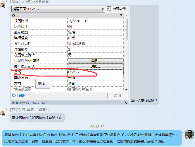 问题:Revit视图属性基线有合作作用?