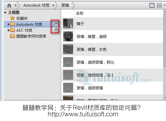 默认自带的2个材质库是锁定的!你不可以对锁定的材质库进行覆盖、删除、修改!但你可以将里面的材质添加到项目材质或自建材质库!