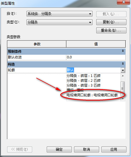 2、将族进行保存并打开族类别,在轮廓用途中选择分隔条