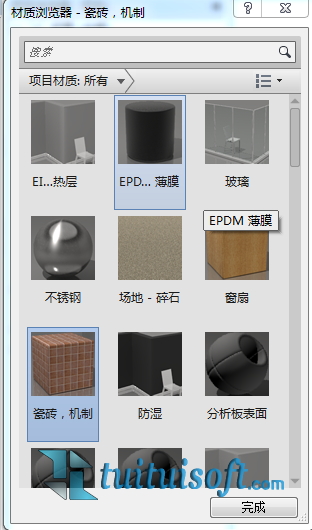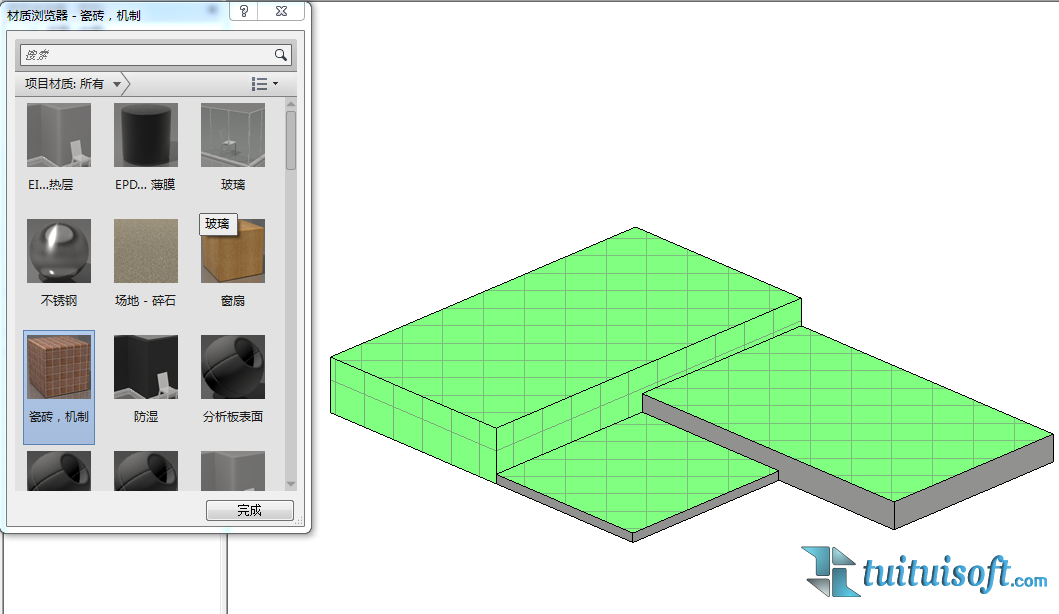 在弹出的材质浏览器中选择楼板表面装饰材料,并直接点击需要填充的侧面即可