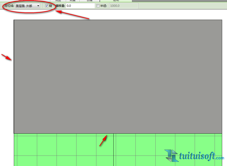 沿着侧边绘制墙体,要注意的是定位线要选择面层面:外部