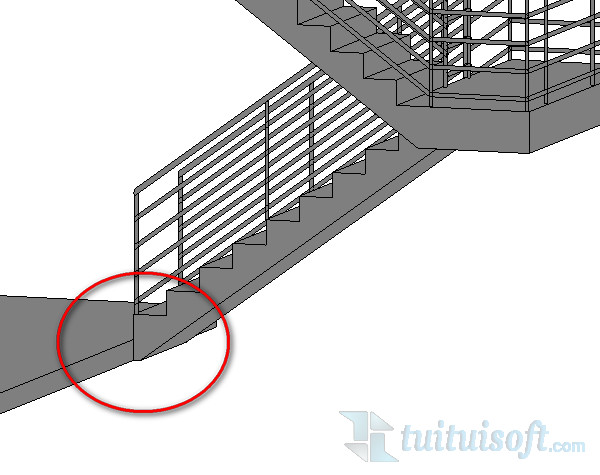 Revit楼梯与楼板处的连接处理不是那么符合实际,会出现一些问题,如下图,这样的连接会导致楼梯配筋时钢筋外露。