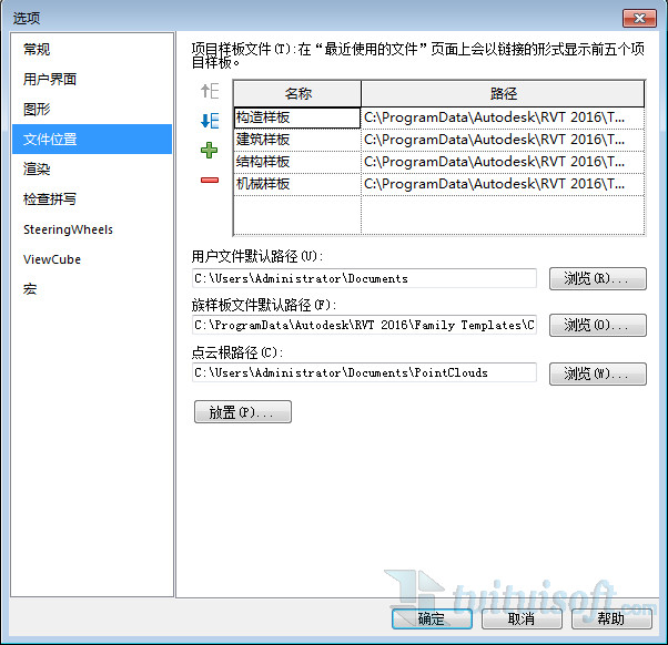 另外:软件默认项目样板文件路径为:C:\ProgramData\Autodesk\RVT 2016\Templates\China
