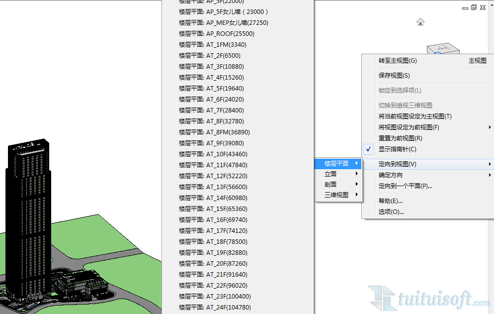 右键ViewCube→定向到视图→楼层平面→选择楼层平面