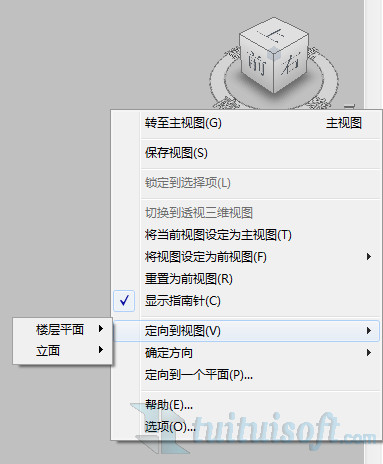 方法不止一个,可以设置过滤器或者在右侧ViewCube中定位到某一视图。针对这个问题,推荐第二种解决方法。(过滤器设置可详见技术文章:今天你设置过滤器了吗?http://photo.tuituisoft.com/usercenter/articles/300/)
