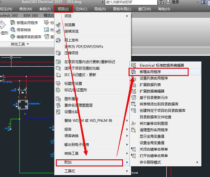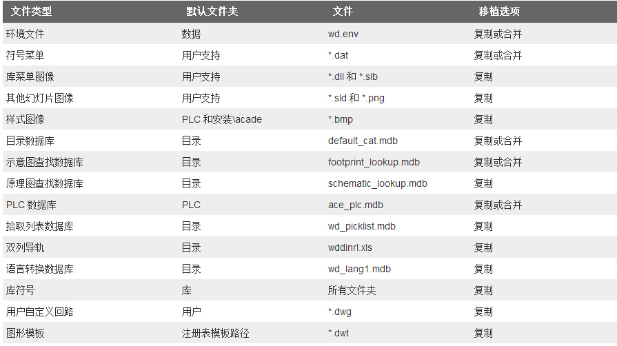 注: 这些是 Autodesk AutoCAD Electrical 2015 之前版本的默认文件夹。文件将被移植到当前文件夹结构。 有两个移植选项,具体取决于文件类型。