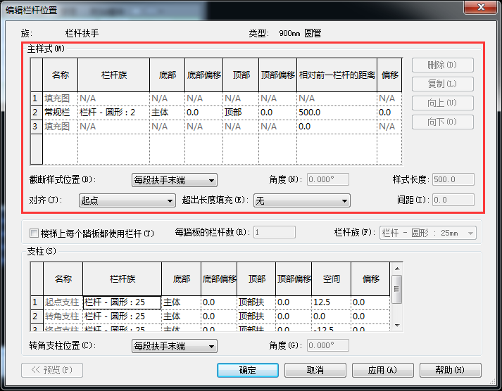 首先,先来看看主样式,这一部分修改的是除去起点、终点以及转角以外的常规栏杆