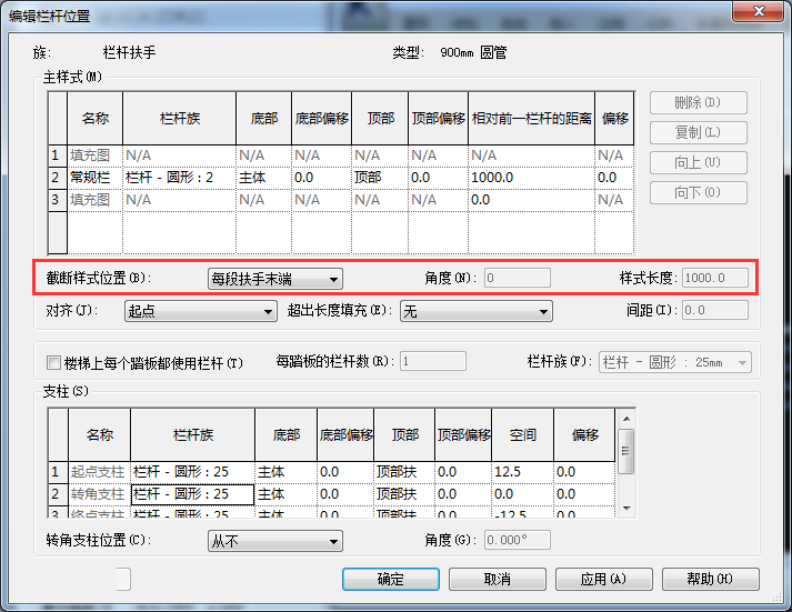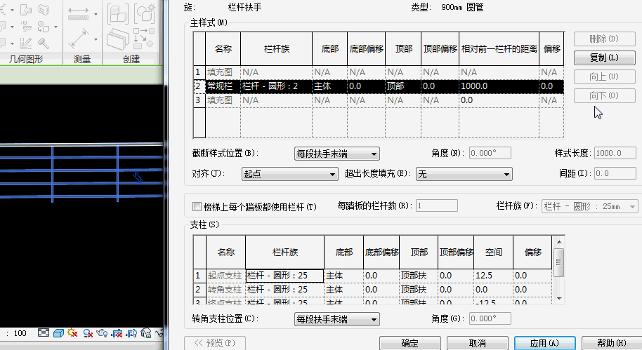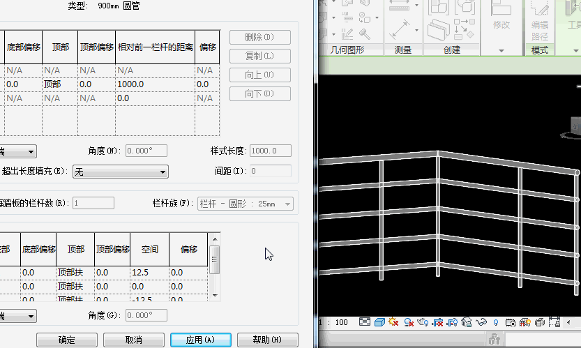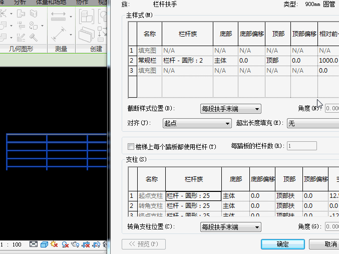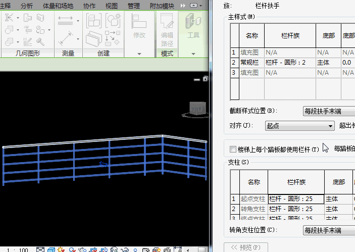 顶部和顶部偏移:用来控制常规栏杆的长度以及顶部的位置