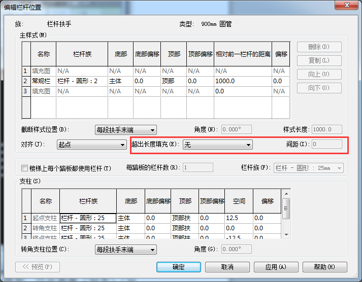 相对前一栏杆的距离:用来控制常规栏杆之间的距离以及根数