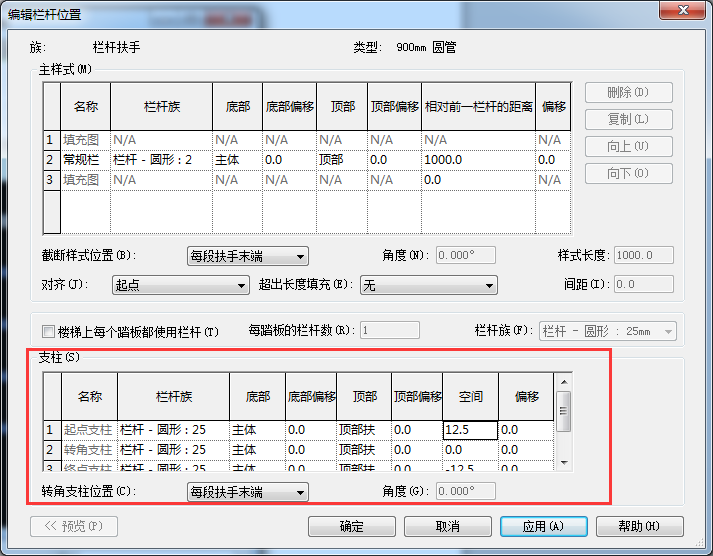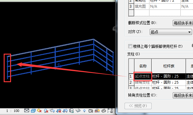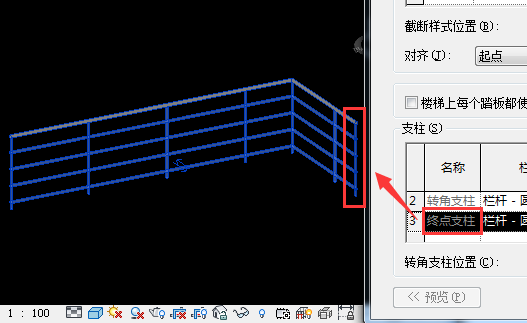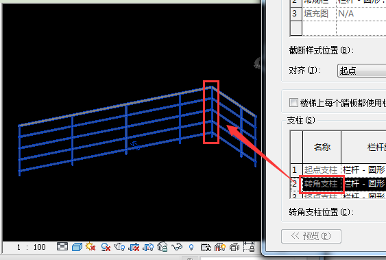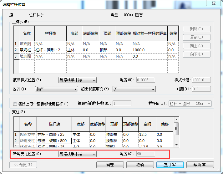 转角支柱位置:当转角支柱为特殊栏杆族时,不满足转角支柱位置条件的栏杆会变为默认栏杆族