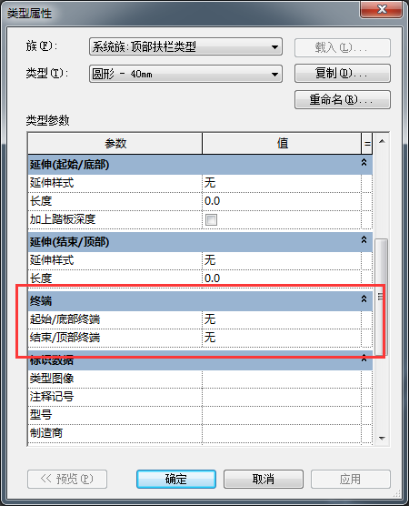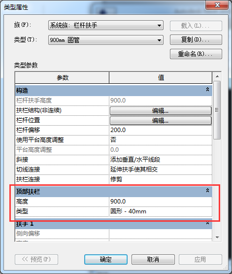 栏杆扶手中其他的构件也可以从项目浏览器中进行修改