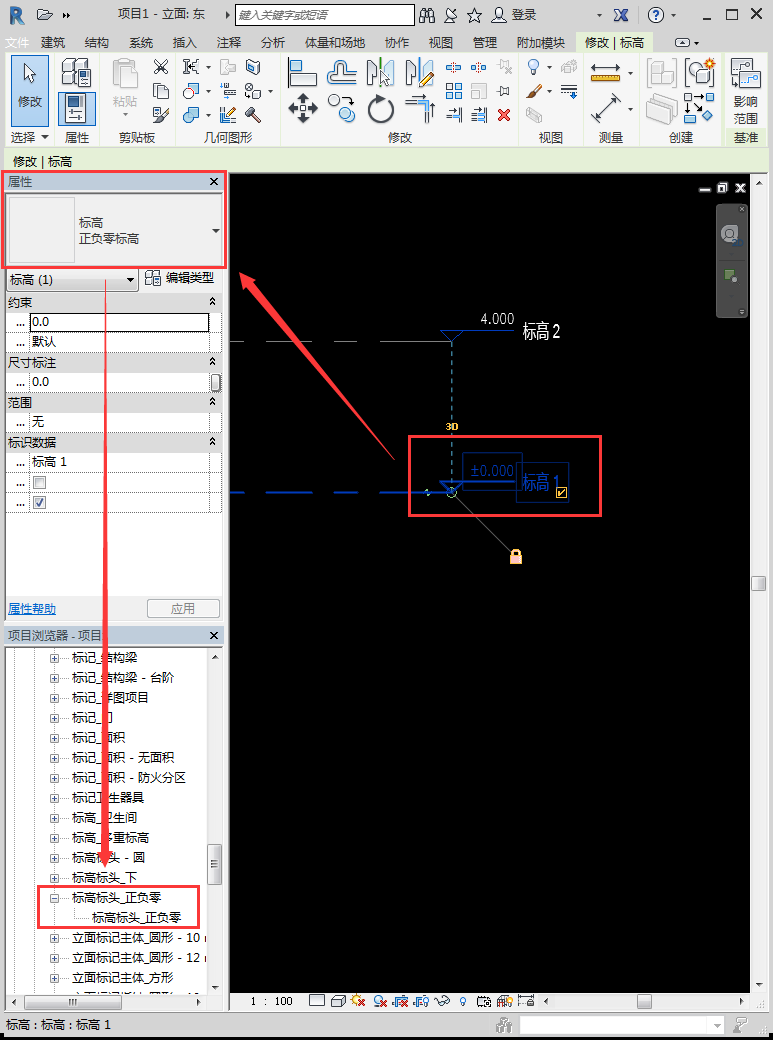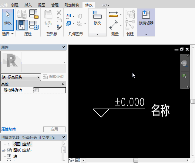 首先,选中我们的标高,按照属性栏显示的标高类型,在项目浏览器中找到对应的族,右键进入编辑模式