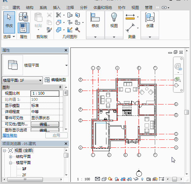 打开【项目浏览器】中的【组】进行创建实例,放置的时候要对准组原点