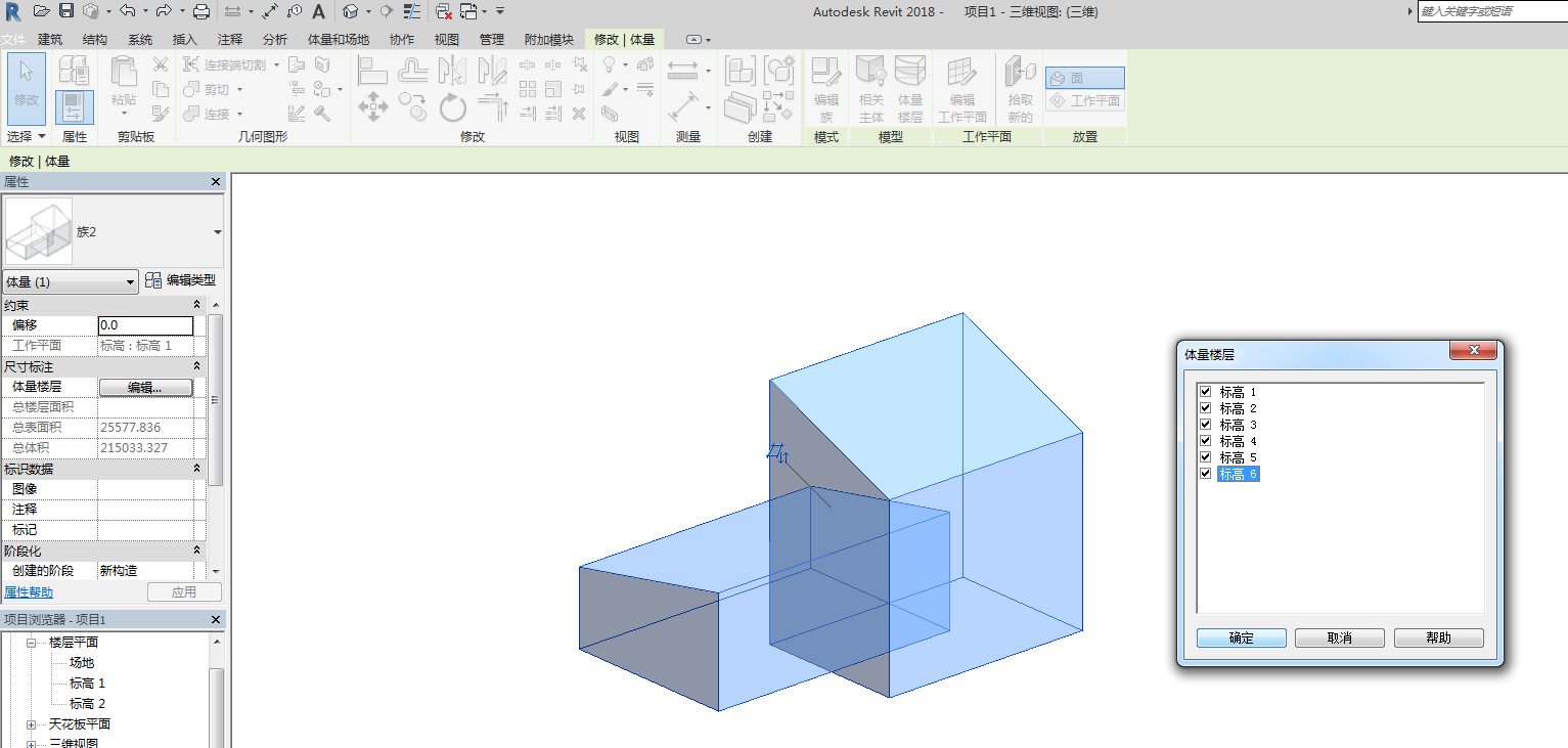 在项目文件中,根据我们项目中的标高设置就可以形成体量楼层