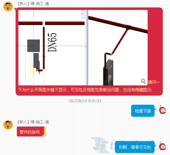 在平面视图管件不显示,可见性和视图范围都没问题,也没有隐藏图元