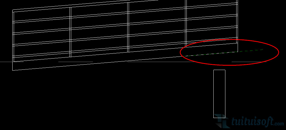 2、转到剖面视图,沿着坡道底板画一条参照平面