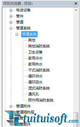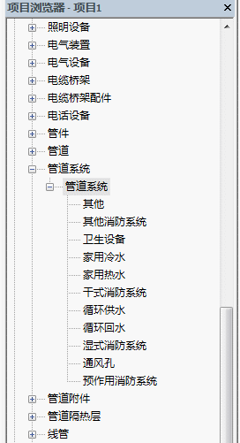 给排水管道属于管道系统,打开项目游览器的族面板,找到我们的管道系统可以发现已经有很多中系统类型供我们选择。