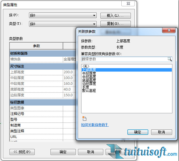 最后,将墙饰条的样式族载入空心剪切族当中,使用【关联族参数】对他们进行参数的嵌套