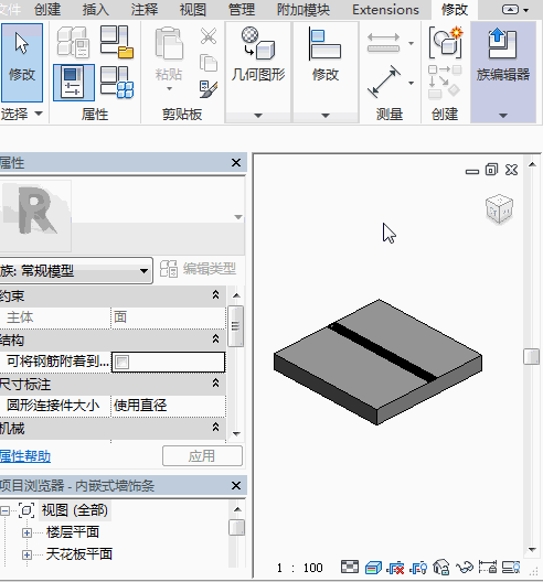 接着,我们再使用【基于面的公制常规模型】创建一个空心剪切族,空心剪切族的长宽高与墙饰条的样式族相对应