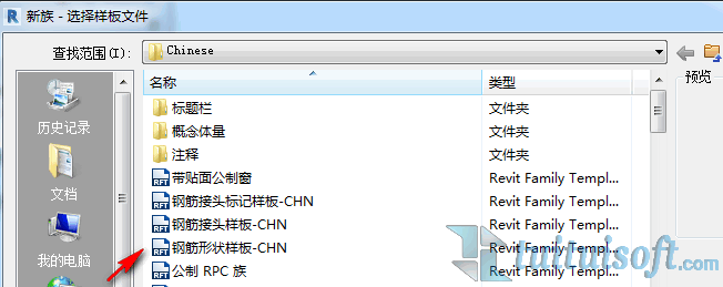 首先新建族“钢筋形状样板-CHN”这个样板里的CHN的意思是:根据国内规范定制的样板。