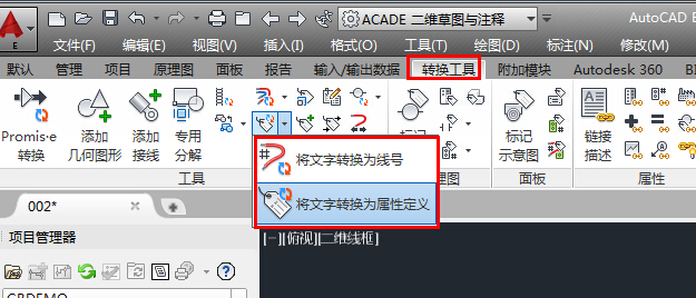 3、找到“将文字转换成线号”或“将文字转换成属性定义”命令