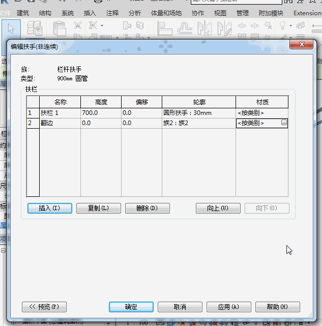 然后,将它载入我们在第一步绘制的栏杆当中并在栏杆族中进行轮廓的添加☟