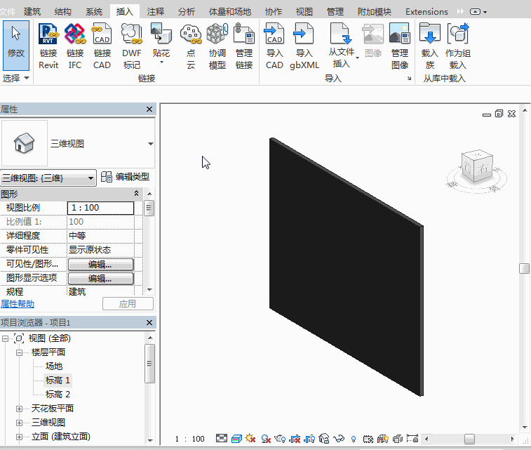 在三维视图中打开【插入】选项卡中的【贴花】