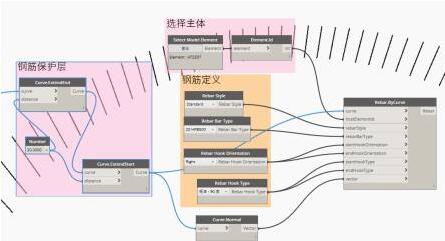 确定钢筋保护层厚度,然后,选择钢筋的各种属性,通过Dynamo Rebar软件包的节点Rebar.Bycurve生成最后的钢筋。