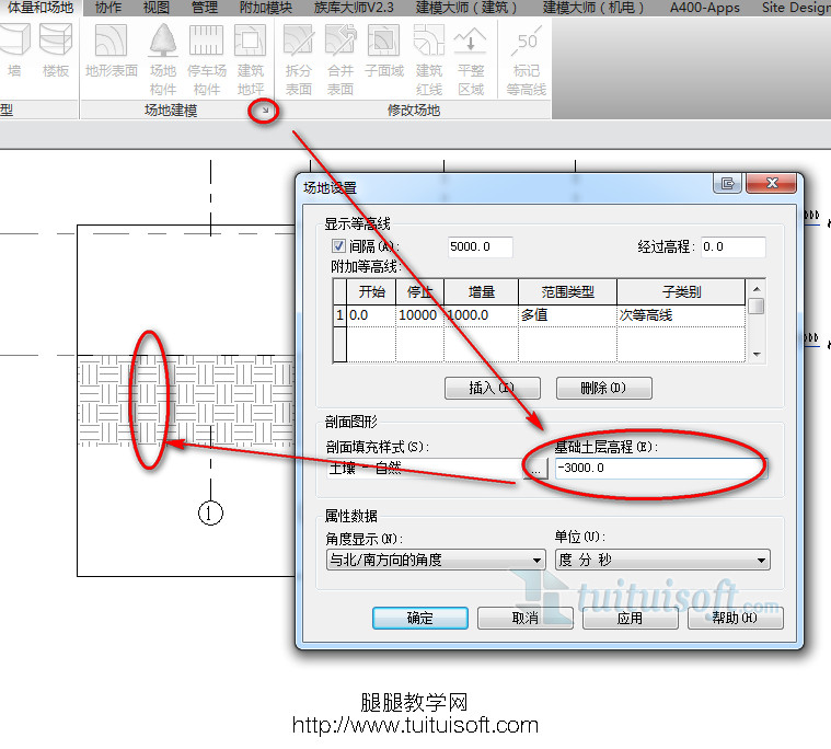 Revit地形厚度通常在剖面中可以显示,显示的厚度是可以设置的!