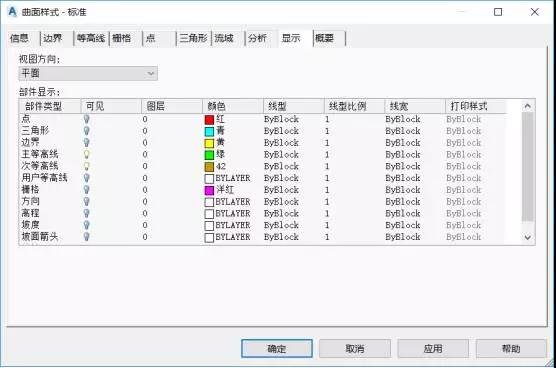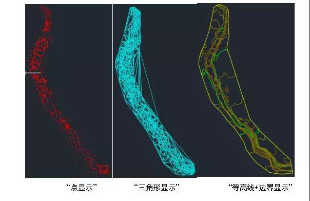 可以看到,曲面的显示方式有三种,“点显示”、“三角形显示”、“等高线+边界显示”。