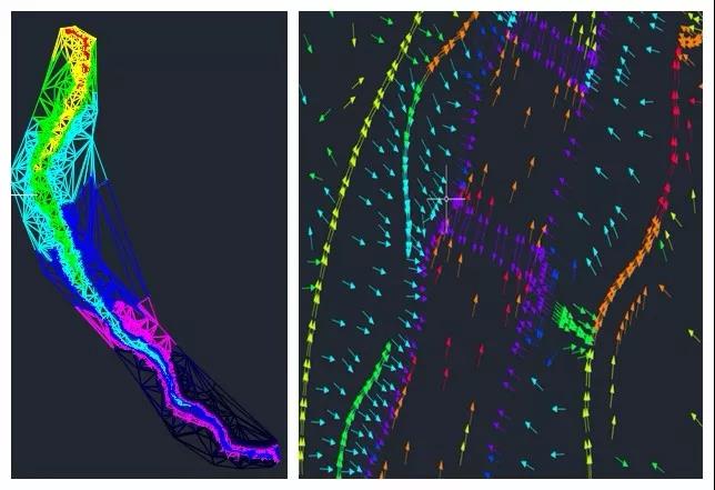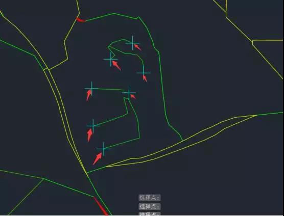 之后,可将鼠标在曲面内点击,软件将自行形成一条多段线,这个就是一滴雨水,落在曲面上流动的路径。多滴雨水的话会形成一块流域。箭头表示一滴雨水。