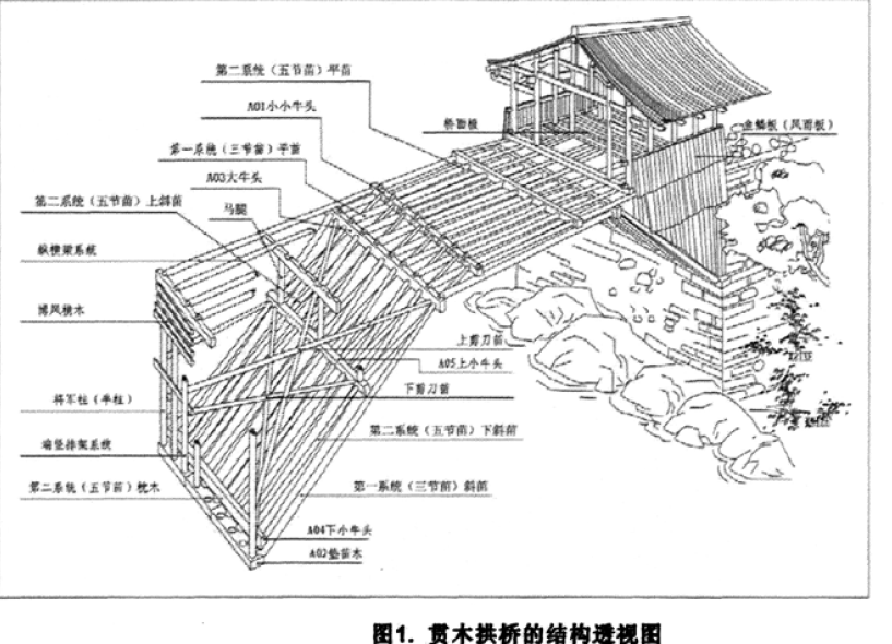 在收集整理好图纸资料后,我们有了完整的数据,可以应用revit制作木拱廊桥的下部结构。廊桥的下部结构由三节苗、五节苗、桥墩、将军柱等构件组成。