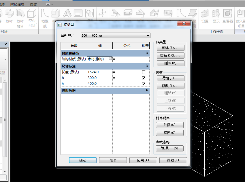 然后,在构件所在标高的结构平面进行构件的绘制。绘制三节苗牛头时,可使用原有的与三节苗牛头相似参数的梁族参数进行更改。例如我所选的是原有的木梁族。更改后可以进行绘制。