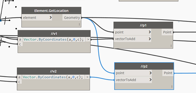 使用Element.GetLocation节点,获取门类型的中心点位置,利用宽度进行两边拓展,利用高度加上过梁高度进行梁高度最终确认,中间使用Point.Add节点进行两侧点计算,之后使用Line.ByStartPointEndPoint进行连接,确定最终梁线。