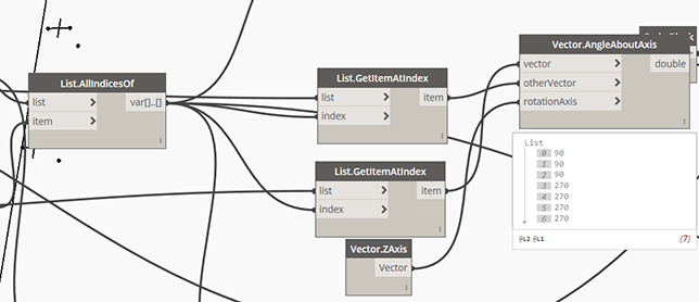这里对墙线向量进行选取是通过将数组拍平,通过List.AllIndicesOf节点进行重新排序,通过固定的排序将所有数据进行重新组织。