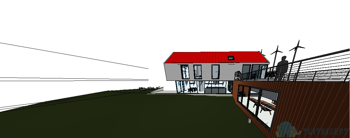 在以下的透视图中可以发现标高在透视图中是默认是不显示的,若我们想在透视图中显示标高,那么可以通过“可见性/图形替换”中的“注释类别”中勾选上标高来进行显示,这时候标高的线型就会以“实线”的方式来显示标高。