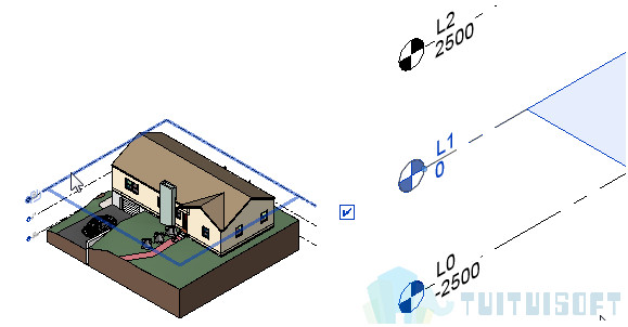 注意:不能直接在三维视图当中添加标高,但可以复制标高,并能将其标高粘贴到该视图的任意位置。