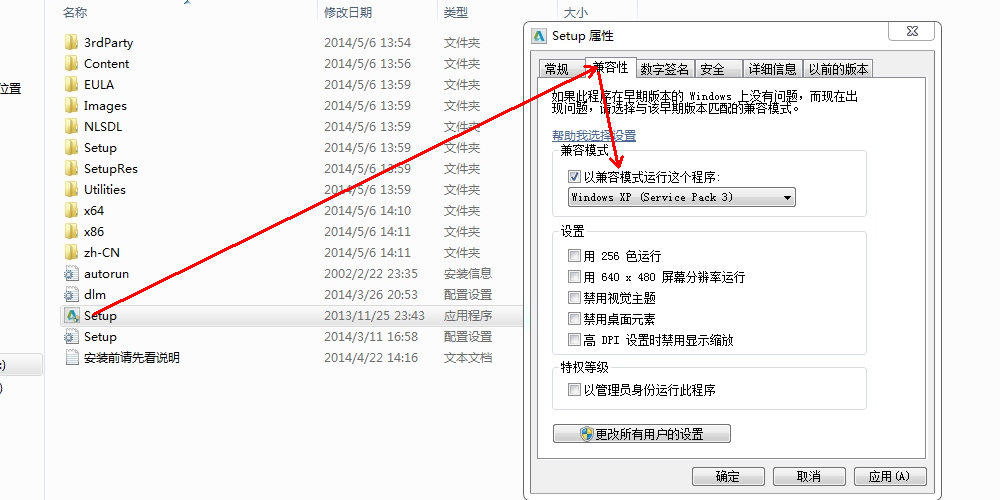 1、在Revit 2015 安装包Setup.exe文件上右键,选择属性,更改成以WINDOWS 7 兼容模式,并以管理员你身份运行,然后再运行安装。