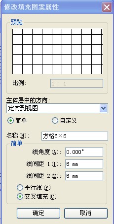 在绘图填充的时候,因为我们视图上的比例是1:100,而图案填充的比例是1:1,所以我们新建编辑我们所需要的填充方式的时候要按比例放大100,例如我们地砖是600的,我们就要创建“地砖-6×6”的地砖填充方式。如图-5所示